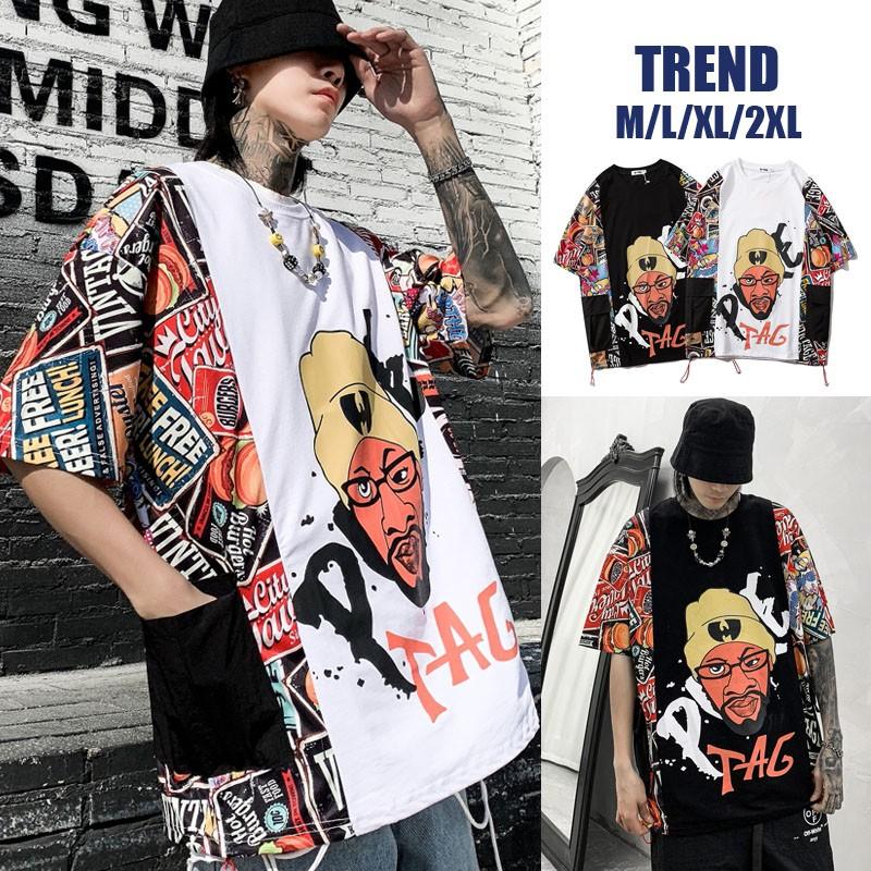 Yuzki 韓国ファッション オーバーサイズロゴ Tシャツ ストリート トップス 半袖 夏 メンズファッション プチプラ Yuzki